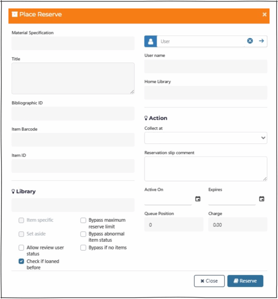- Search screen | Item Right click context menu – ‘Reserve Item’. This will reserve a specific item.