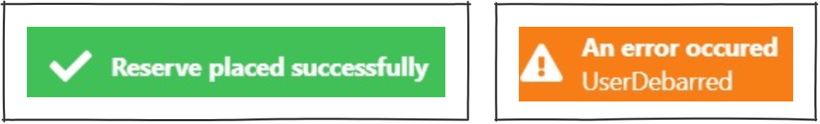 If something prevents a reserve being placed an error will be displayed in the top right corner with the reason for error.
