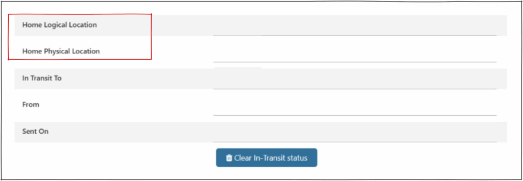 - In Transit To – Only visible when in transit and lists the physical location the item is going to.