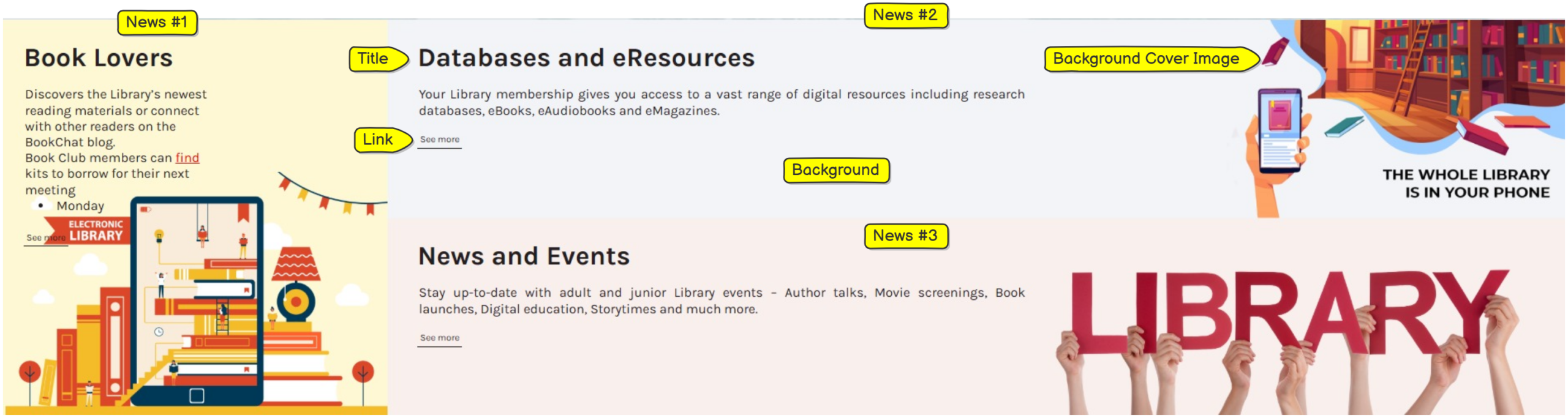 - Link – adding a link to a url will be displayed as ‘see more’ on the news section. Clicking the link will open the set url.
