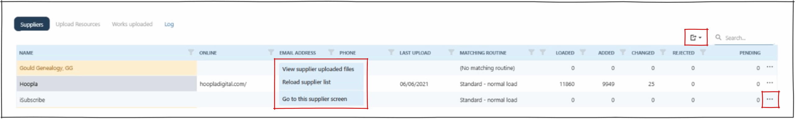 - Reload supplier list – reloads the suppliers list to display any supplier changes..