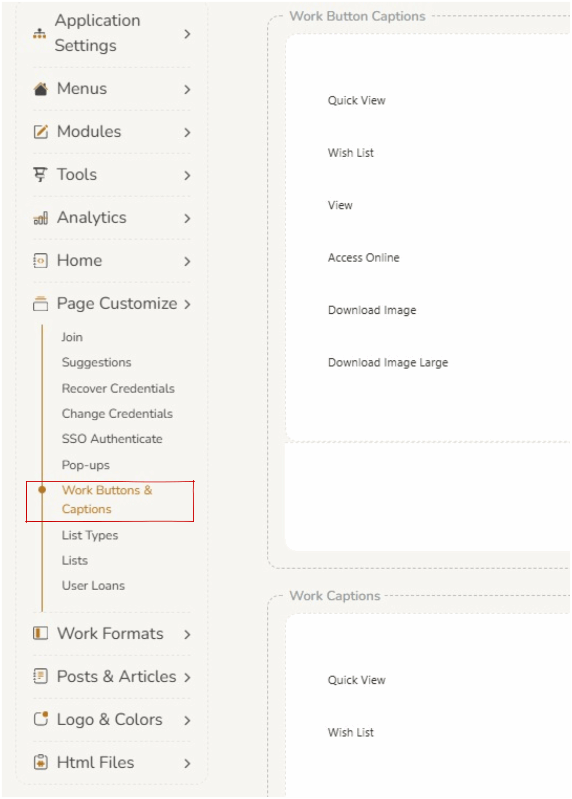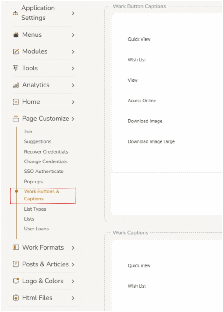 Work Buttons & Captions